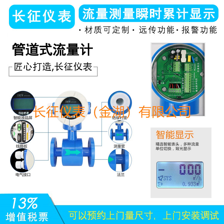 管道式流量計除可測量一般導電液體的流量外,還可測量液固兩相流,高粘度液流及鹽類、強酸、強堿液體的體積流量。